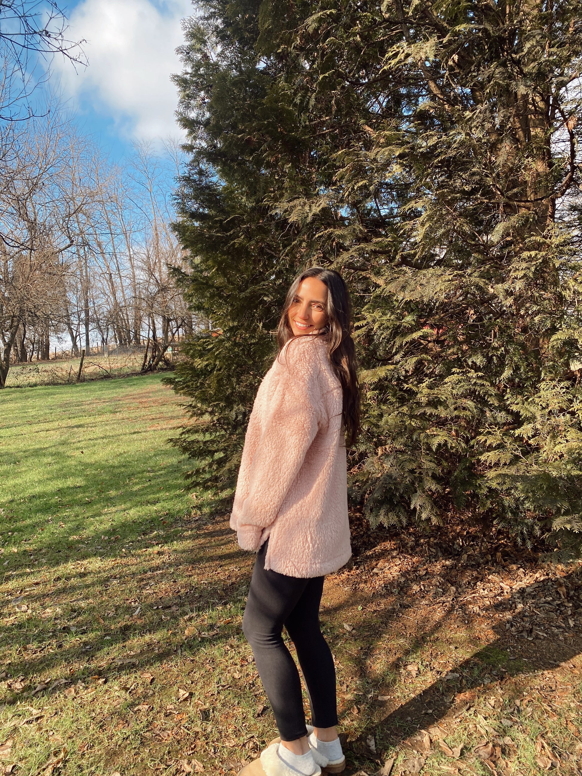 The ultimate comfort and coziness in our Pink Plush Pullover. Made with the softest material, this pullover is perfect for lounging at home or staying warm while running errands on chilly days. Guaranteed to feel like a soft blanket, you won't want to take it off! Functional snap buttons.