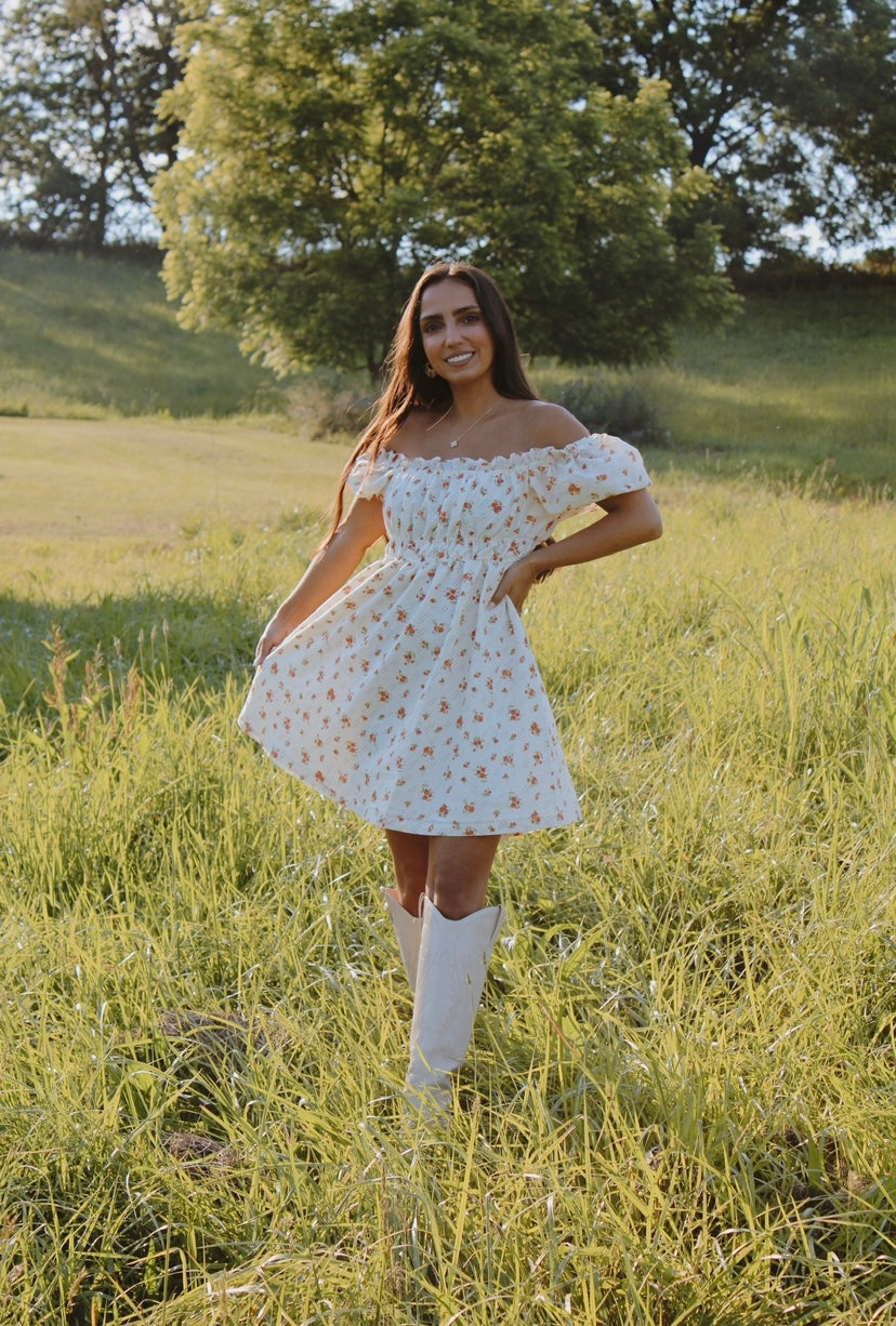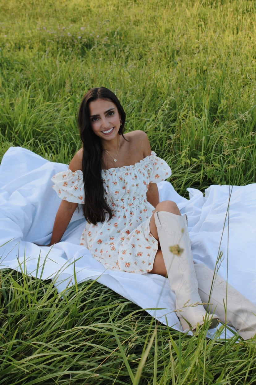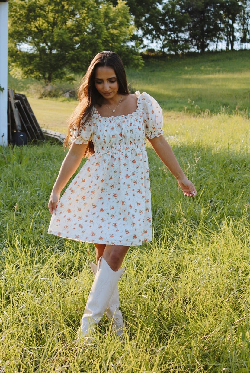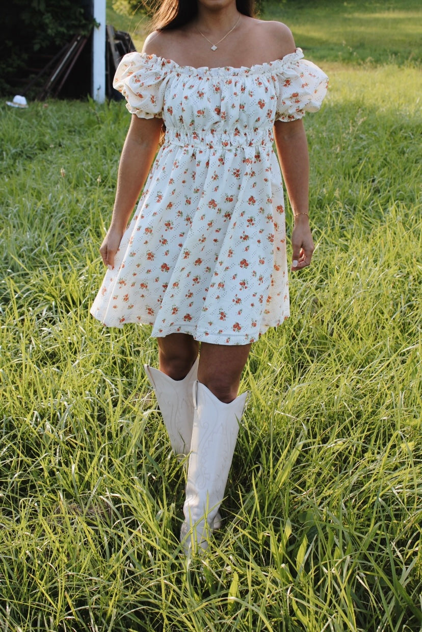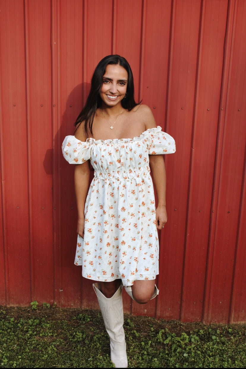 Grab the Southern Charm Dress to wear all summer long! With its cute and vibrant floral pattern and versatile puff sleeves that can be worn on or off the shoulder, this dress is perfect for any summer occasion. Made with great quality material, it's the perfect choice for a day at the vineyard, a dinner date, or a concert. Elevate your style with this must-have dress!